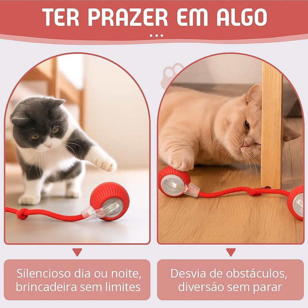 A Bola de Caça Eletrônica se movimenta sozinha, muda de direção automaticamente e desperta o instinto natural de caça, mantendo seu pet ativo, entretido e feliz — mesmo quando você não está em casa.