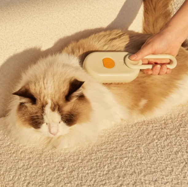 A Escova a Vapor para Pets remove os pelos soltos sem dor, sem barulho e sem estresse.